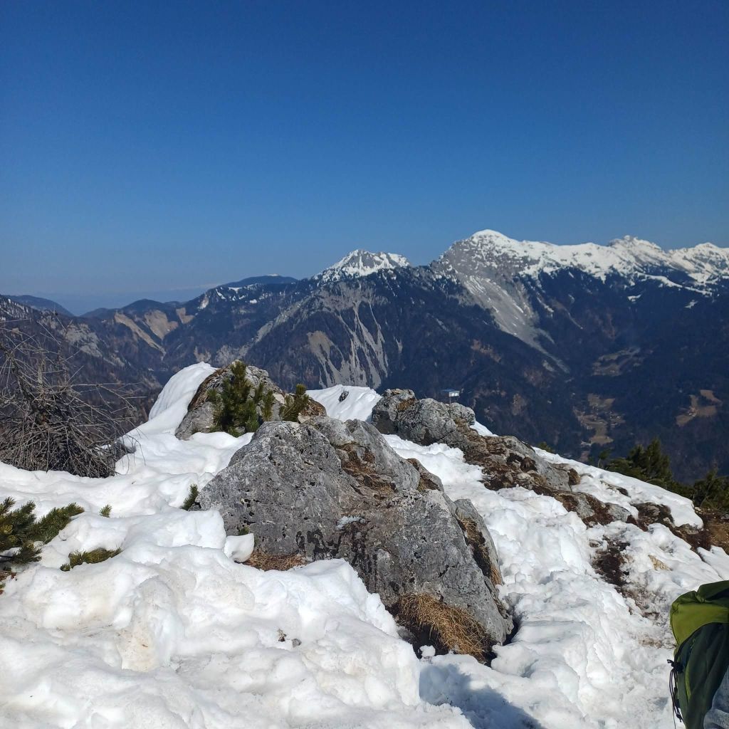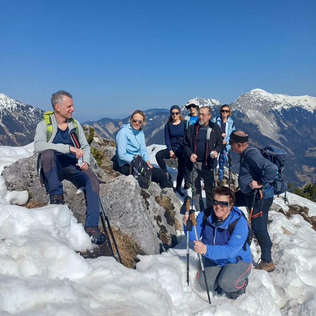 Skupaj smo premagali nekaj več kot 1000 višinskih metrov. Dan nam je postregel s soncem, lepimi razgledi in še nekaj snega na vrhu. Odlična družba in dobra hrana na koči sta poskrbeli za dodatno energijo.