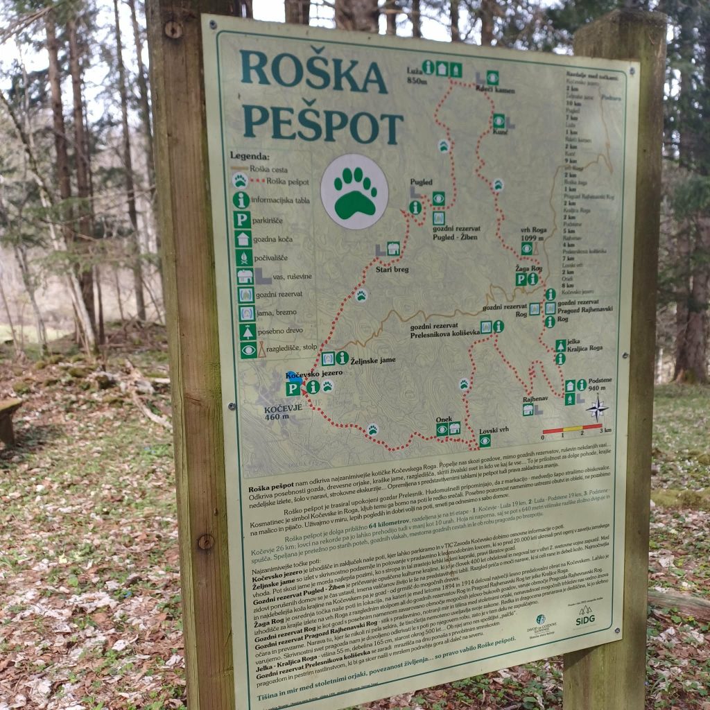 3. dan (nedelja) Rajhenav – Kočevje, 20 km, vzpona cca 400 metrov (Lovski vrh, Podstene) in 650m spusta proti izhodišču, cca 6 ur hoje.